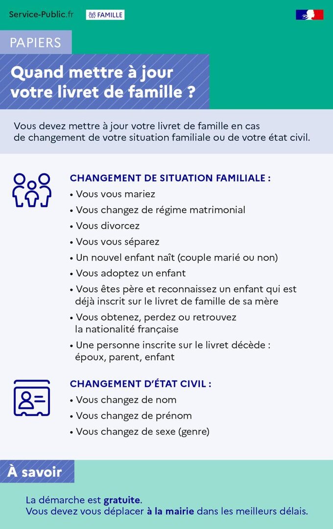 Mise à jour du livret de famille à la suite d'un changement d'état civil (naissance, divorce, etc.)
